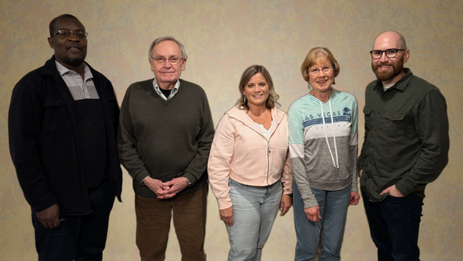 From right to left: Alex Ssebugwawo, Herb Hiegel, Robyn Wiebe, Diane Jefferson, Derrick Cruz